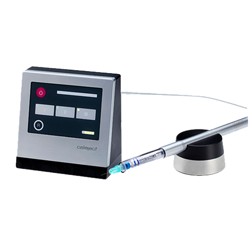 We do not use the classic ‘’injection‘’! We use the Calaject® device for local anaesthesia. The local anaesthetic is applied between the tooth and gum and pressed around the roots of the tooth. This has the advantage that there is no ‘prick’ as the gums are not touched and the lip and cheek are not also anaesthetised. This also eliminates the unpleasant tingling sensation after the treatment and the children can eat and drink again immediately afterwards without any concerns.